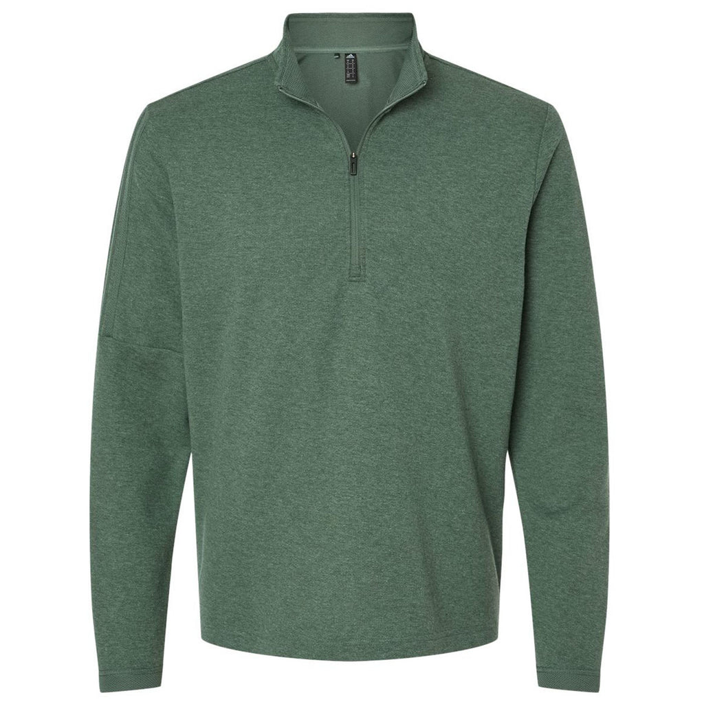 Create a look with a custom Adidas Men's Green Oxide Melange 3-Stripes Quarter-Zip Sweater. This upscale sweater offers moisture-management properties and a stand-up collar for that classic look that can truly be appreciated by all. This sweater is perfect for the golf course and the clubhouse after for a drink and snack with friends.