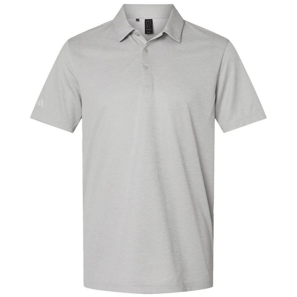 Adidas Men's Grey One Heather Space Dyed Polo with a corporate logo is a fashion-forward way to showcase your company or brand. Whether playing in a golf tournament, working out of the office, or showcasing products at a trade show, this is a true must-have. The contrasting Adidas logo is on the right sleeve.