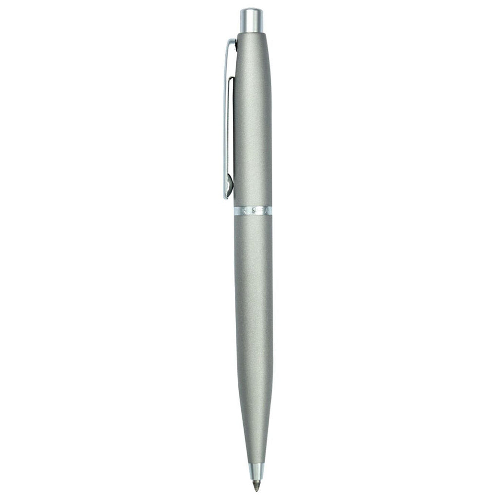 Sheaffer Silver VFM Brushed Chrome Ballpoint with a corporate logo is the way to put your best foot forward with every client. This modern styled pen with refillable ballpoint has satin strobe silver with chrome trim that can easily be displayed on a desk or kept in a suit pocket to make a lasting impression.