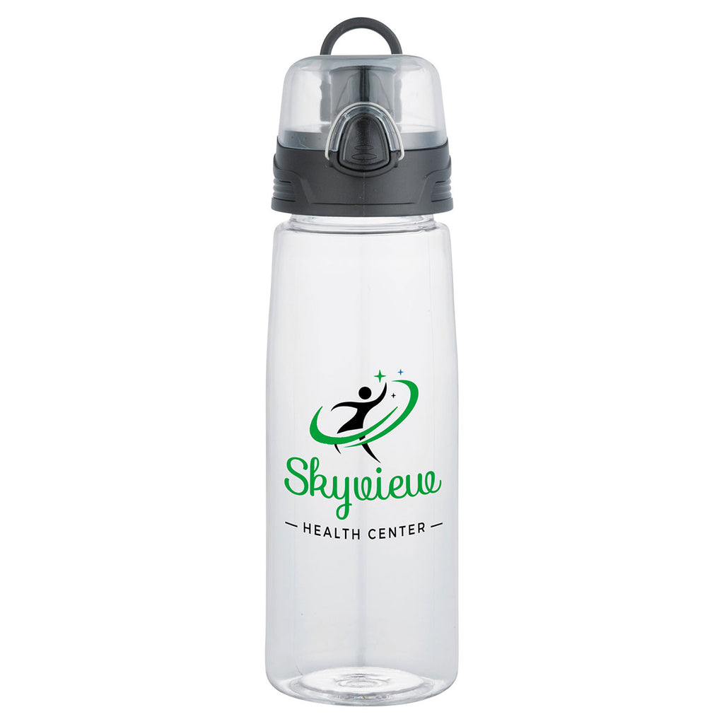Enjoy the multi-part design of the Bullet Clear Capri 25oz Tritan Sports Bottle. The clear BPA-free surface includes a press-button drinking lid that flips open. The spout offers a clear port for enjoying water or anything else. Add your corporate logo to this bottle and offer the unit as a gift during a fitness-related event in the workplace.The minimum order for this product is 100 pieces.