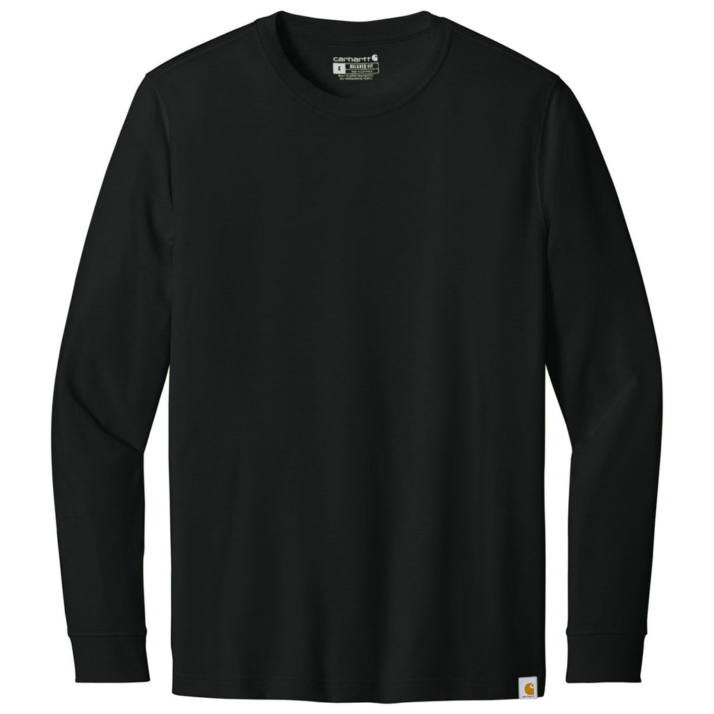 The custom Carhartt Men's Black Long Sleeve T-Shirt delivers durability and comfort for those who need dependable workwear. Made from sturdy cotton, it's built to withstand tough conditions, while the long sleeves provide extra coverage. Whether working outdoors or tackling DIY projects, this shirt offers reliability and comfort throughout your day.This product can only ship within the United States and Canada.