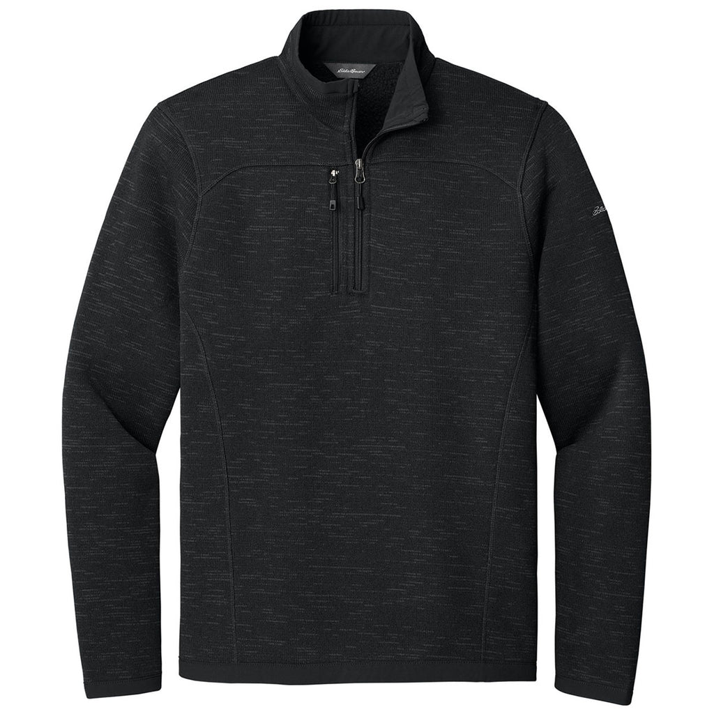 Create a unique custom embroidery look with the Eddie Bauer Men's Black Sweater Fleece Quarter Zip made of beautiful refined sweater fleece material. Perfect for any corporate event in which the attire is dressy casual, this Quarter zip offers a cadet collar, exposed coil zippers, and open cuffs and hem for a refined, yet comfortable look. Add a corporate embroidery to use these as additional pieces to company uniforms or provide end of the year gifts that will be cherished for years to come. The perfect blend of polyester and spandex trim mean these Quarter zips are easy to wear as part of a layered look.