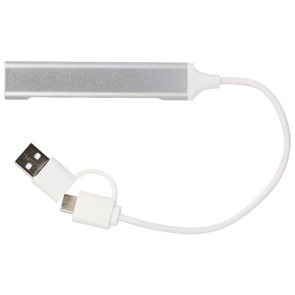 Add a corporate logo to the Leed's Silver Recycled Aluminum 4-Port USB-A and C Hub for a convenient way to connect devices for versatility. The four output ports include three USB-A and one Type-C port to connect multiple devices with ease. Perfect for those who work from home, the office, or as a gift.