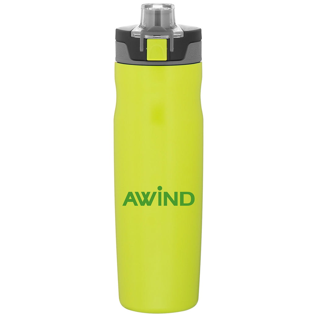 The H2Go Matte Astroturf Jolt 20.9 oz Water Bottle with a custom logo is an easy to use, daily carry bottle that is ready for whatever happens to be on your schedule. The double wall stainless steel thermal bottle has a copper vacuum insulation to keep your drinks at the right temperature for hours. The threaded one-touch push button lid has a locking mechanisms, spout cover, drinking spout, and removable carrying strap to use when hiking, biking, or just hanging with friends. Add a company logo to use at trade shows or special events. Place an order today so you do not miss out.The minimum order for this product is 48 pieces.