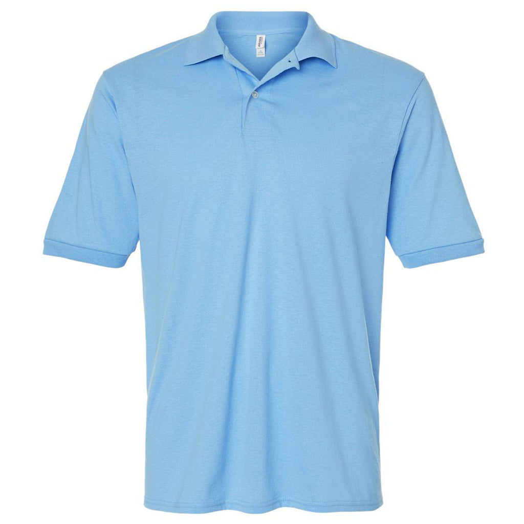 Choose embroidery for the Jerzees Men's Light Blue Dri-Power Polo made of sustainably sourced cotton. This classic polo is comfortable for all-day wear weather at work, hitting the driving range, or going out to drinks with friends at the club. Your custom design will pop on the preshrunk fabric that is created for long-lasting wear.Corresponding Women's Style: Jerzees Women's Light Blue Dri-Power Polo