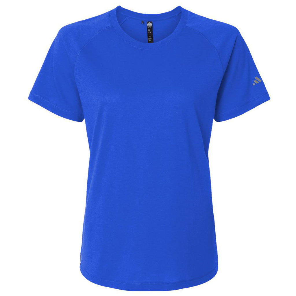 The Adidas Women's Collegiate Royal Blended T-Shirt with a custom logo is a must-have for those who like to relax and have a little fun. The regular-fitting tee is highly versatile and looks great during almost any activity. Made of recycled polyester and cotton, the sustainable tee can serve as brand awareness, team gear, or daily wear with ease.