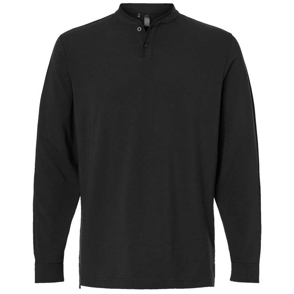 Upgrade your look with a custom Adidas Men's Black Henley Long Sleeve Tee. This hydrophilic tee has a regular fit with stretchy fabric, making it perfect for outdoor work in questionable weather. The sleek look means you can go from the office to the club in this versatile option that most would love to add to their wardrobe.