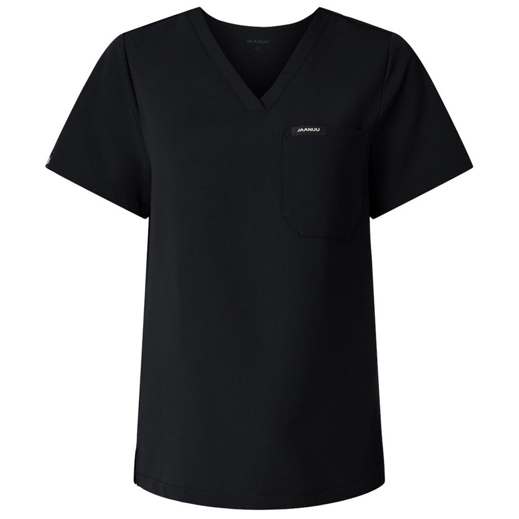 Jaanuu Women's Black Rhena Essential 1-Pocket Scrub V-Neck Top
