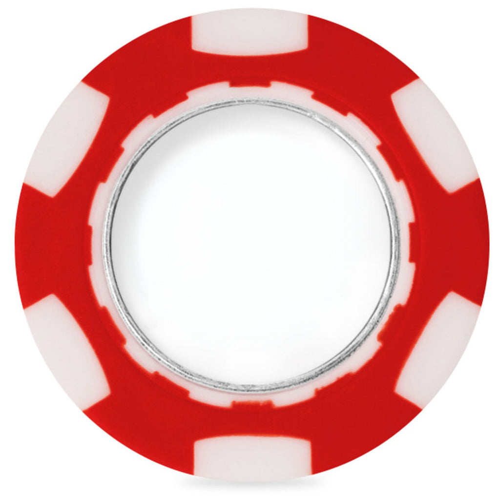 Ahead Red/White Poker Chip with Ball Marker with a corporate logo is ideal for tournament play, as the magnetic ball marker sits in the center of the chip. Mark your ball position without interfering with the putting line of others. Get your logo seen each time this marker is used on the course. Ideal for a pro shop impulse buy.