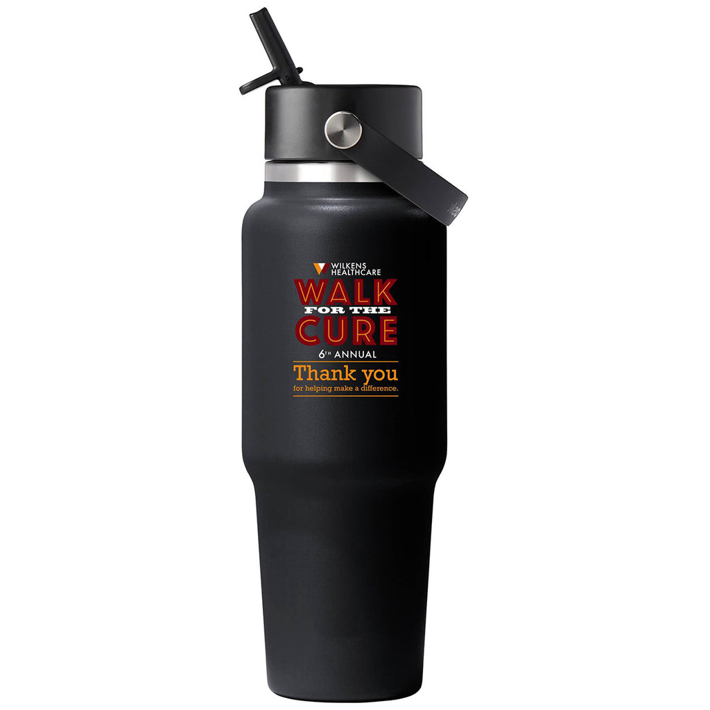 Add your custom logo to the Hydro Flask Black Travel Bottle with Flex Straw Cap 32oz. The leakproof design features features a flip straw lid allowing you to open it with one hand. The 32-ounce bottle is double-wall vacuum insulated to keep your dink cold for 24 hours and the tapered base allows it to easily fit in most cupholders making it the perfect companion when you're on the road.The minimum order for this product is 24 pieces.