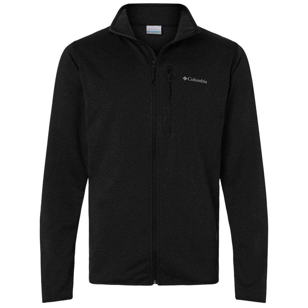 Columbia Men's Black Essential Hike Grid Fleece Full-Zip offers breathable warmth ideal for embroidery or custom outdoor programs. The grid fleece design enhances comfort across changing conditions, while the full-zip style makes layering easy. Great for staff apparel, hiking groups, or branded collections seeking reliable mid-layer performance.