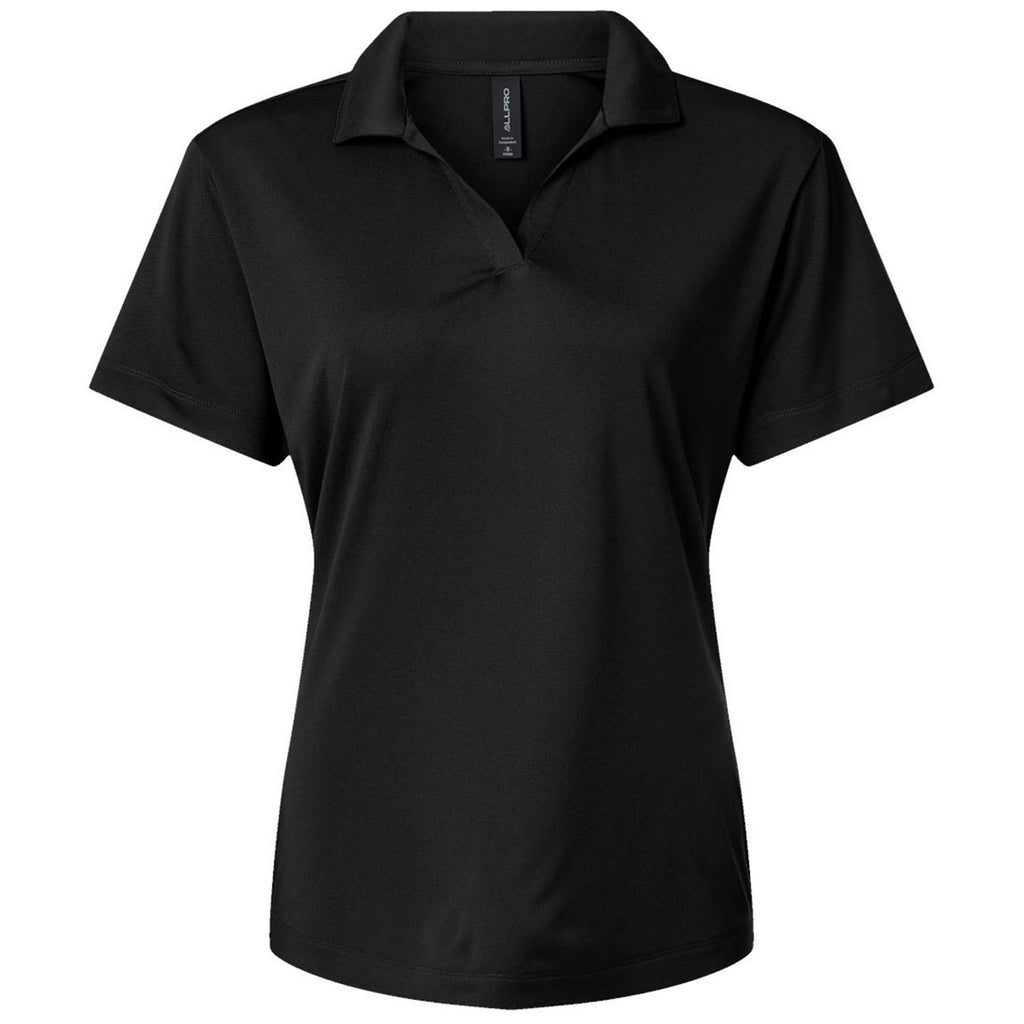 Stylish and breathable, the AllPro Women's Black Pro-Lock Performance Polo is tailored for active professionals who value comfort and appearance. Featuring a contoured fit and moisture-wicking fabric, it's a top custom option for staff apparel or event uniforms. Your brand stays visible while the wearer stays dry and confident all day.Corresponding Men's Style: AllPro Men's Black Pro-Lock Performance Polo