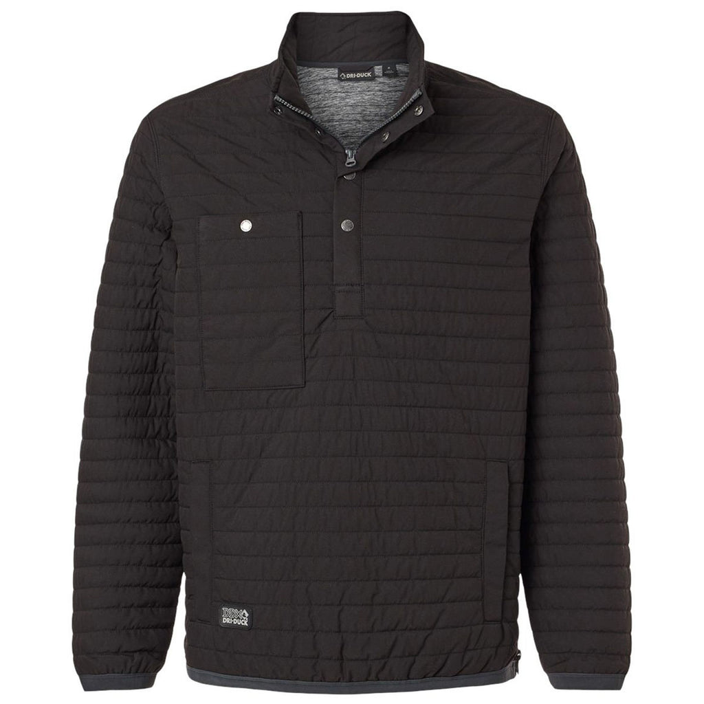 Stay warm in a custom Dri Duck Men's Black Keystone Quilted Pullover. The 2-layer stretch fabric is bonded to a waterproof membrane with polyfill insulation and a quilted look for style. The dual-closure, four-snap placket protects you whether you are hiking, commuting, or simply going about your day. Give as a gift or add to your logoed apparel options.This product cannot ship outside of the United States
