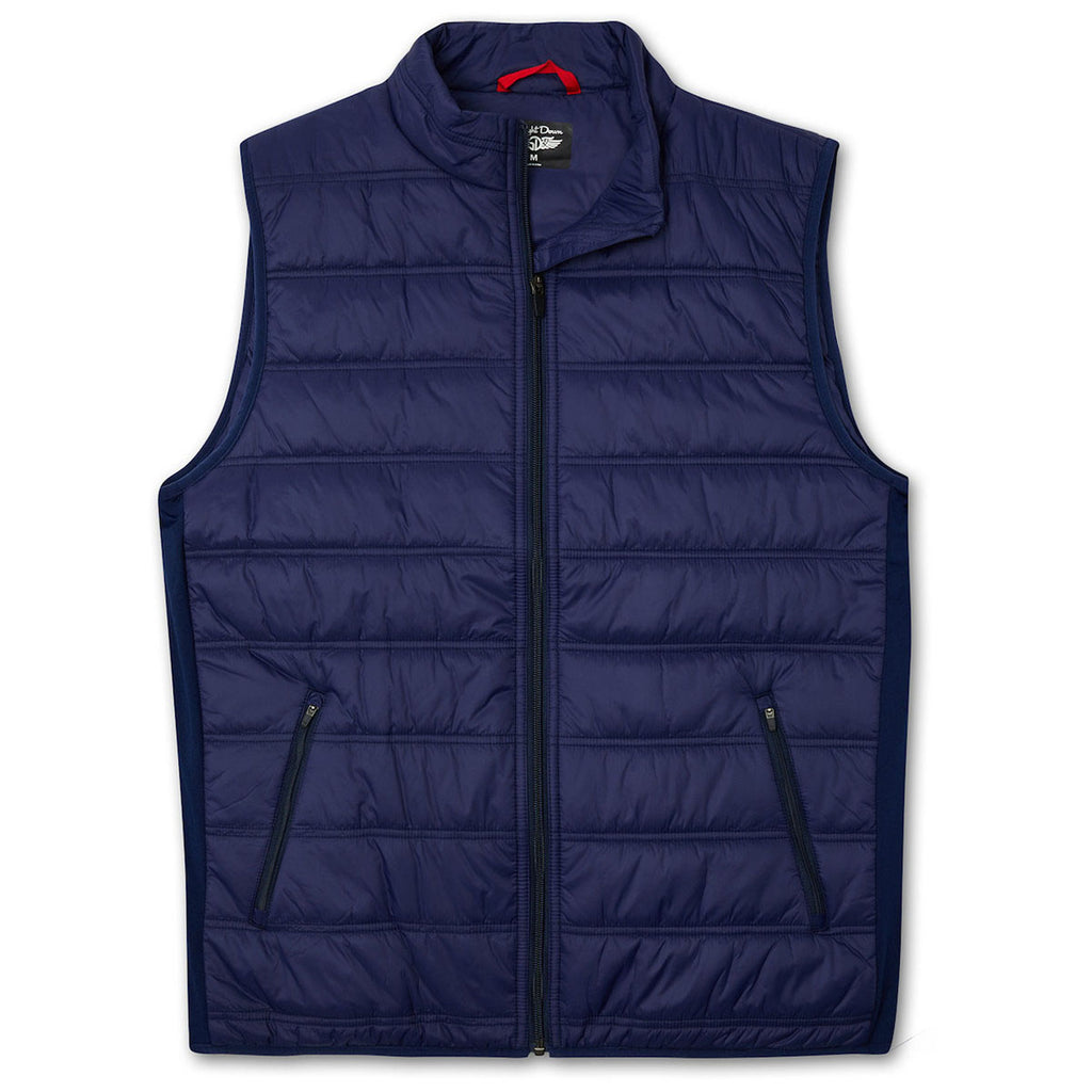 Ideal for corporate layering, the Straight Down Men's Indigo Delta Vest brings warmth without the weight. Windproof fabric and a modern cut make it a reliable option in mild weather. Sleek zip pockets and subtle quilting offer style and function, perfect for clients or staff who need a refined outer layer.Highlights