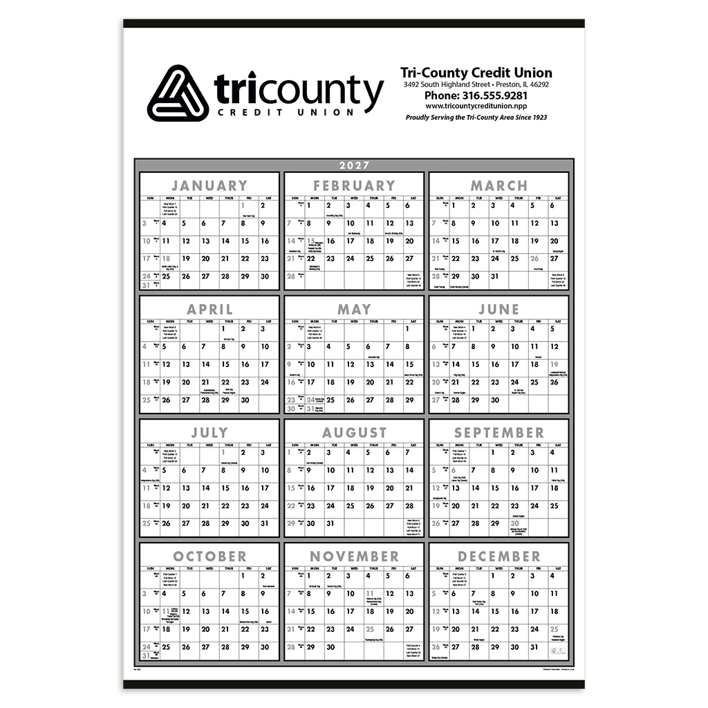 Triumph Calendars Black & White Black & White Span-A-Year Non-Laminated calendar with a custom logo is the best way to look at a full year at a glance. The single-page calendar shows every day for ease of scheduling and is made from well-managed FSC-certified forests and other sources. Great in a swag bag, at trade shows, and at other specialized events. Order today.The minimum order for this product is 100 pieces.