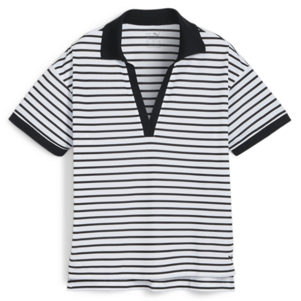 Puma Golf Women's White Glow / Puma Black Everyday Stripe Pique Golf Polo