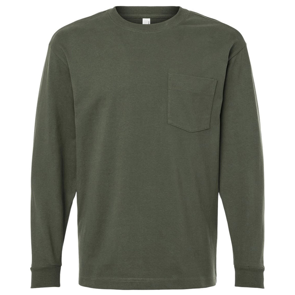 American Apparel Unisex Lieutenant Super Heavyweight Long Sleeve Pocket Tee with a custom logo offers an oversized fit that keeps you comfortable all day long. The relaxed-fitting tee is a must-have for layering and relaxing, whether that means playing a pick-up game of basketball, working out, or just chilling as you watch the big game.Highlights