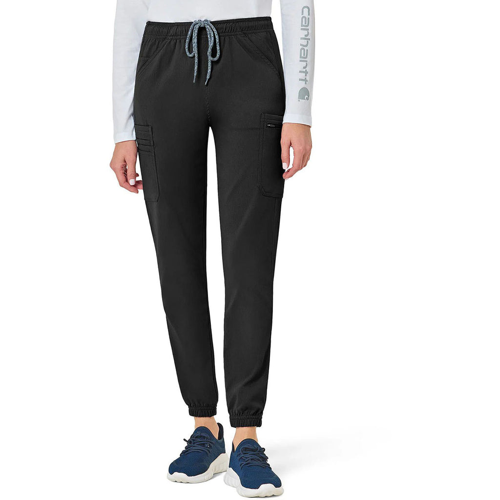 Carhartt Women's Black Nine-Pocket Cargo Jogger Pant with a custom logo is great for those days when you are busy but want to be comfortable. This multi-pocket pant will keep everything you need at hand while also being water-repellent and highly durable. Perfect for working outdoors, working with patients, or working with children.
