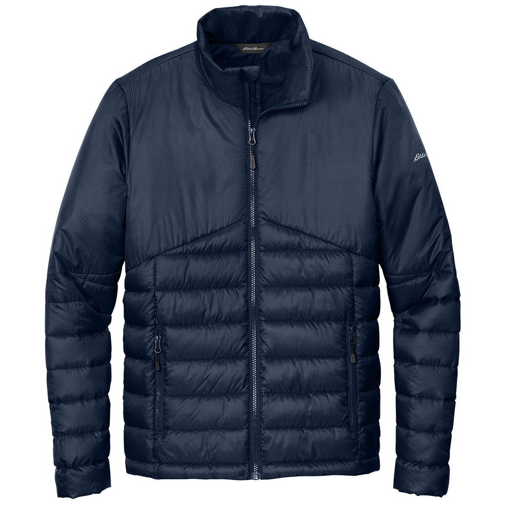 Eddie Bauer Men's River Blue Navy Quilted Jacket with a custom logo is ideal for those who work or play in the Great Outdoors. The quilted jacket is warm without being bulky and maximized to keep you warm while building snowmen, hitting a black diamond slope, or watching an outdoor game with friends. Place an order today.This product can only ship within the United States, Puerto Rico, Canada, and Mexico.