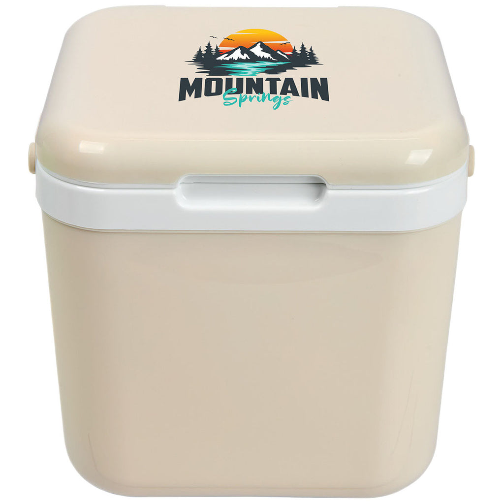 The Logomark Cream 4.8 Qt Personal Lunch Box Cooler makes a practical custom gift for employee recognition or promotional resale. The compact size holds up to six cans and features a durable hard-sided exterior. The snap-shut lid and easy-carry handle make it ideal for worksites, outdoor events, or everyday lunch packing with your logo front and center.The minimum order for this product is 25 pieces.