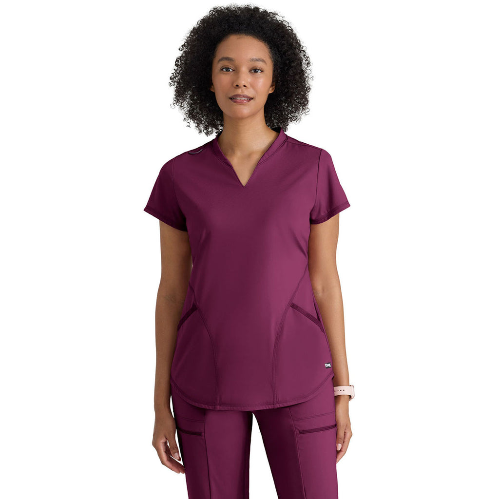 Grey's Anatomy Women's Wine Two Pocket V-Neck Define Top