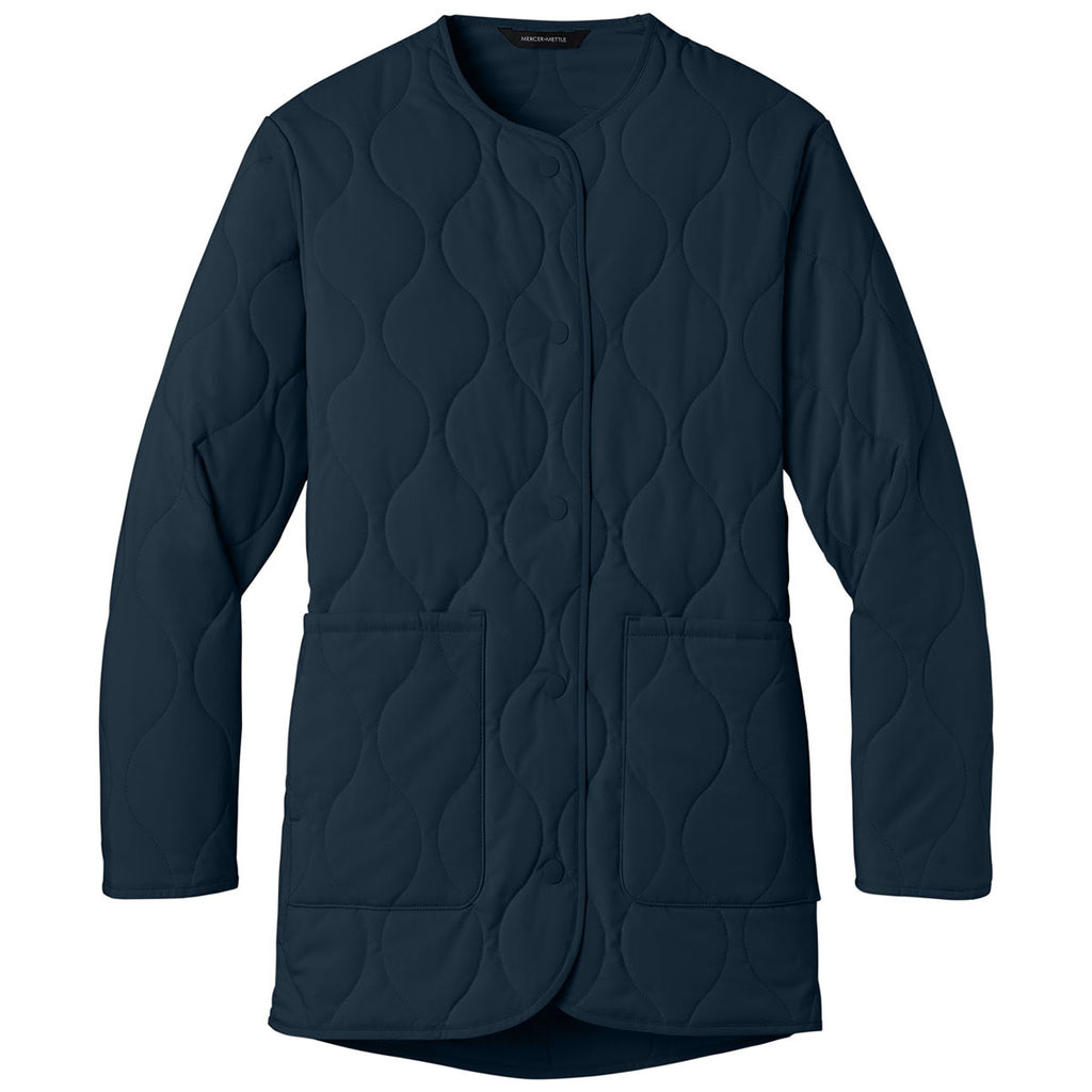 Custom embroidery turns the Mercer+Mettle Women's Night Navy Quilted Liner Jacket into a polished corporate apparel option. Lightweight yet warm, it layers easily and delivers a flattering fit. Add your logo to create a professional branded jacket that works well for employee uniforms, seasonal gifting, or client appreciation. Stylish and functional, it ensures your brand looks sharp.Corresponding Men's Style: Mercer+Mettle Men's Night Navy Quilted Liner Jacket