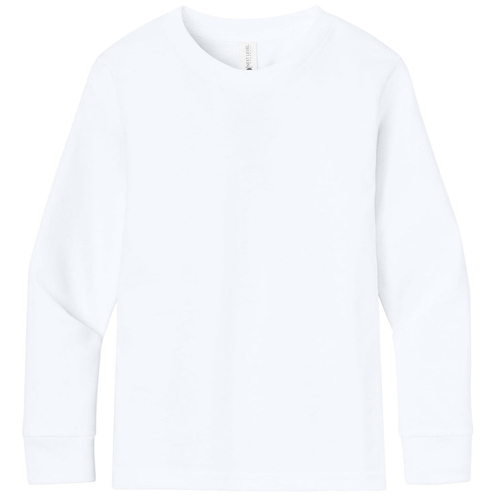 Next Level Youth White Cotton Long Sleeve Tee