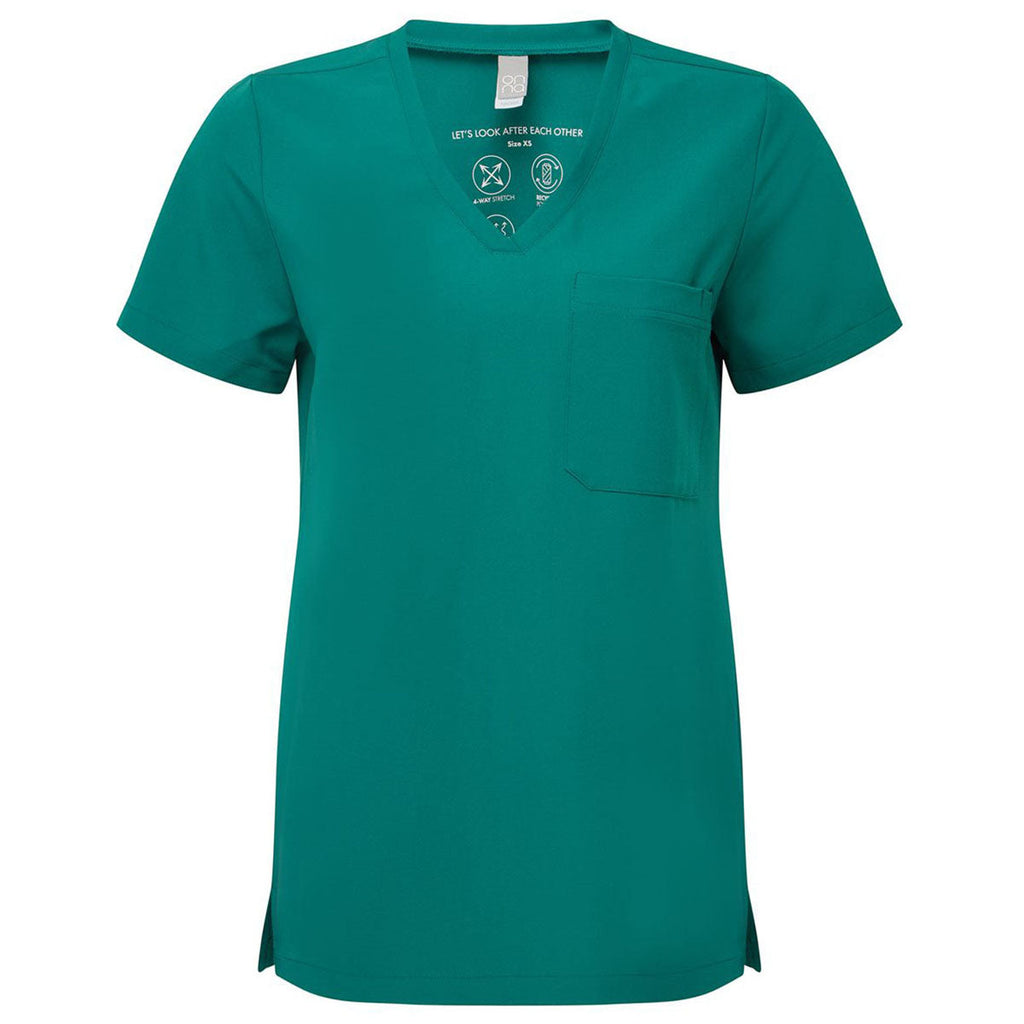 Onna Women's Clean Green Limitless V-Neck Stretch Scrub Top
