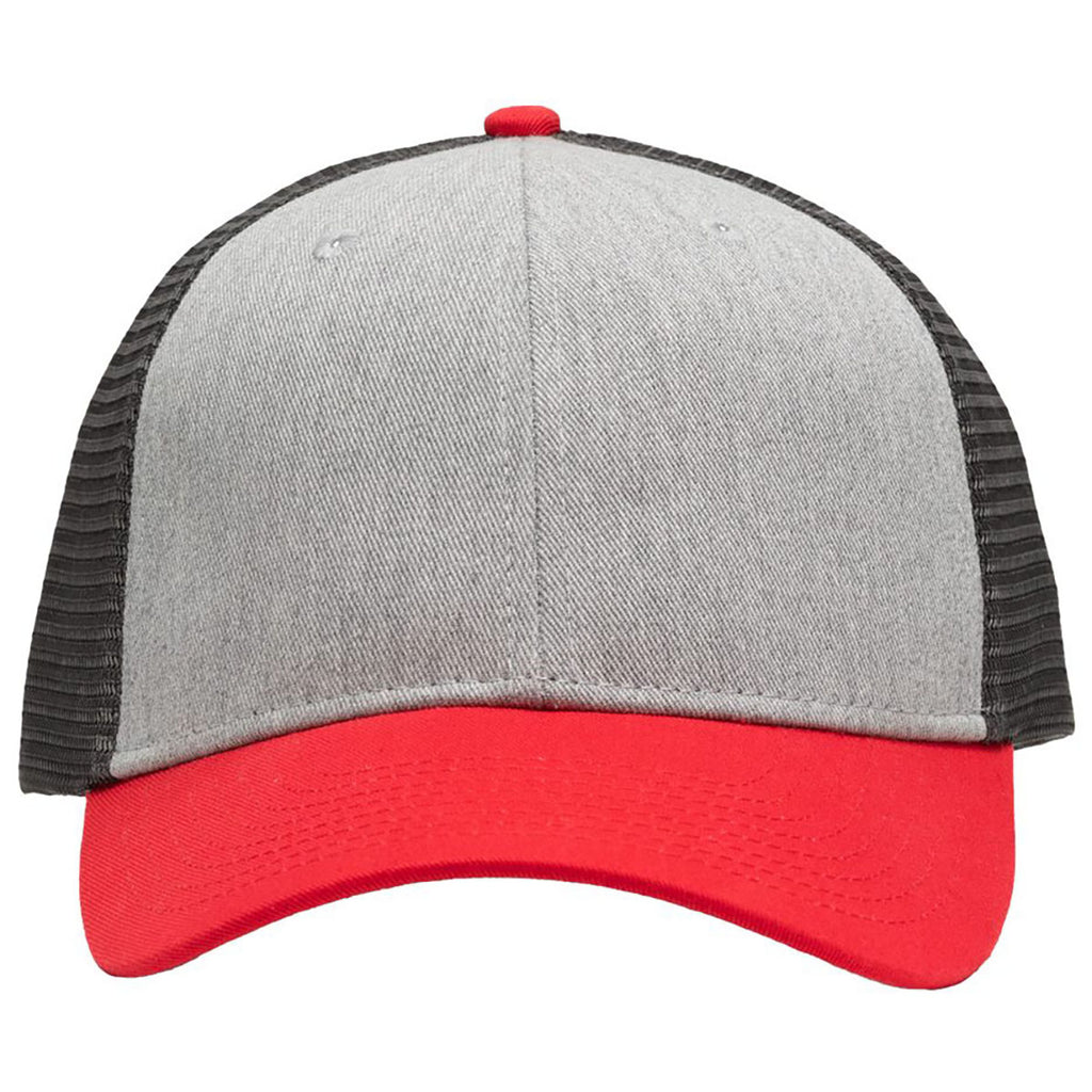 Sportsman Heather Grey/Charcoal/Red Lo-Pro Mesh Back Trucker Fit Cap