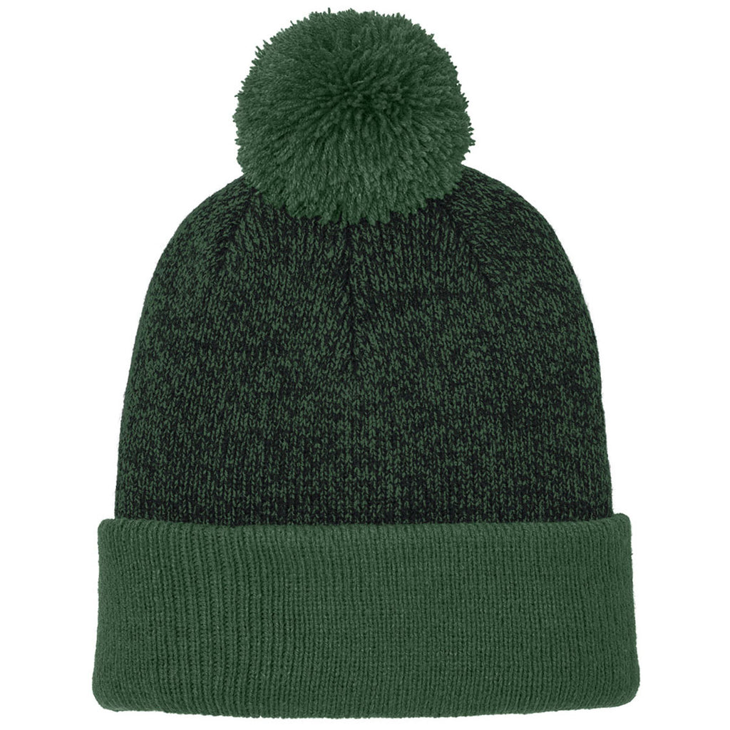 Sport-Tek Forest Green/Black Halftime Heather Pom Beanie